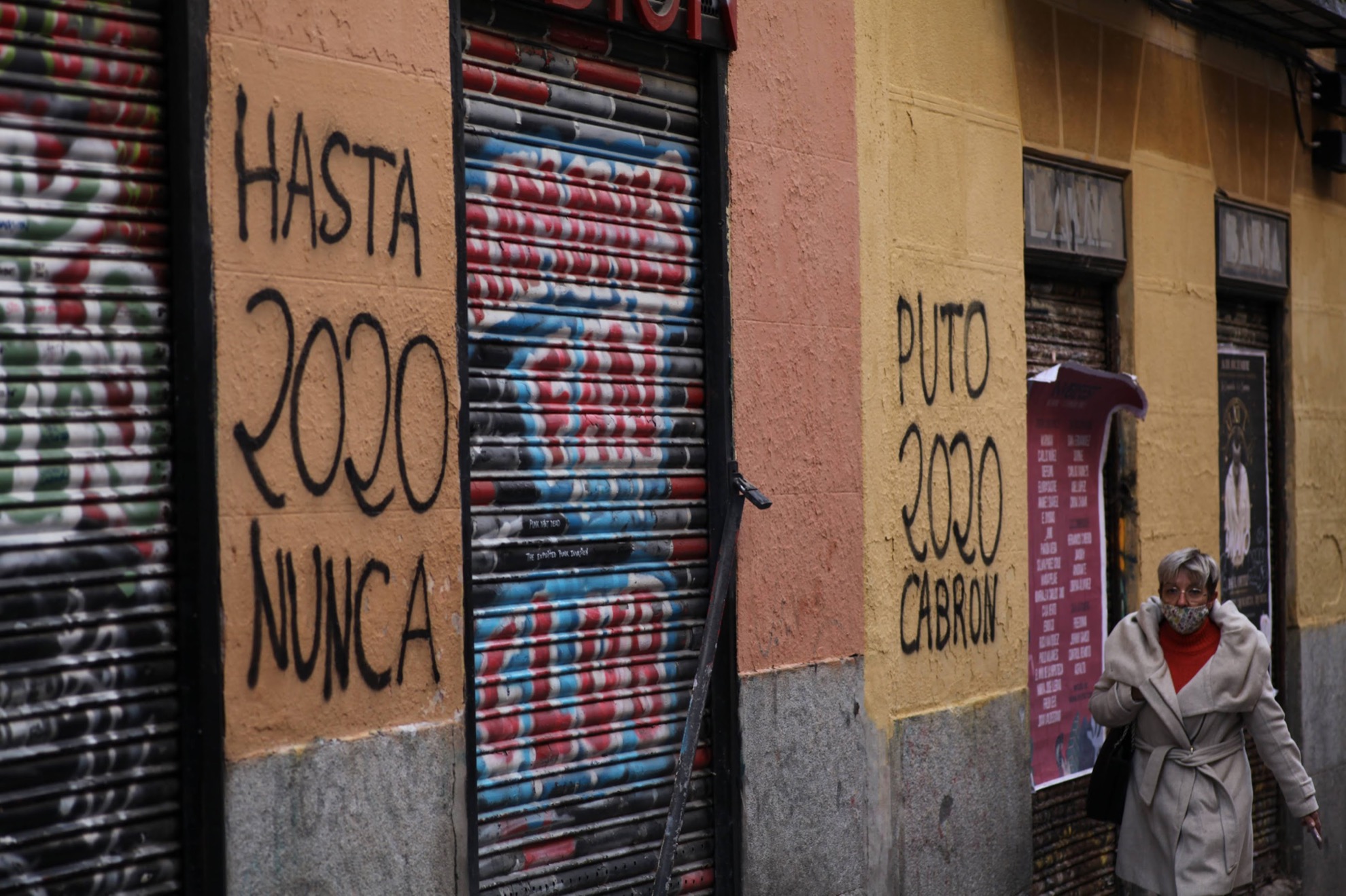 Pintada en fachada de calle Velarde, en el barrio madrileño de Malasaña, despidiendo el 2020.
